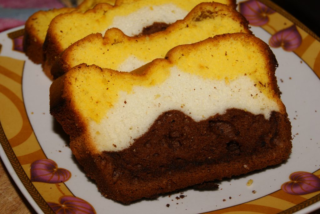 Ingrediente: pentru partea galbena: 6 galbenusuri 3 linguri faina 3 linguri zahar 3 linguri ulei 1/2 lingurita praf copt esenta rom pentru dunga neagra: 3-4 linguri cacao pentru partea alba: 6 albusuri 3 linguri faina 3 linguri zahar pudra 3 linguri ulei 1/2 lingurita praf copt esenta vanilie Mod de preparare: Batem galbenusurile cu zaharul […]
