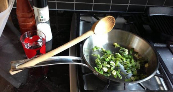 Tigaile vin din fabricatie cu o gaura in maner, dar putini dintre noi stiu care este rolul ei. Respectivul orificiu se foloseste si pentru a pune lingura sau ustensila cu care amesteci in mancare. Astfel, daca sprijini lingura de coada tigaii, aceasta nu se va incinge de la caldura aragazului.
